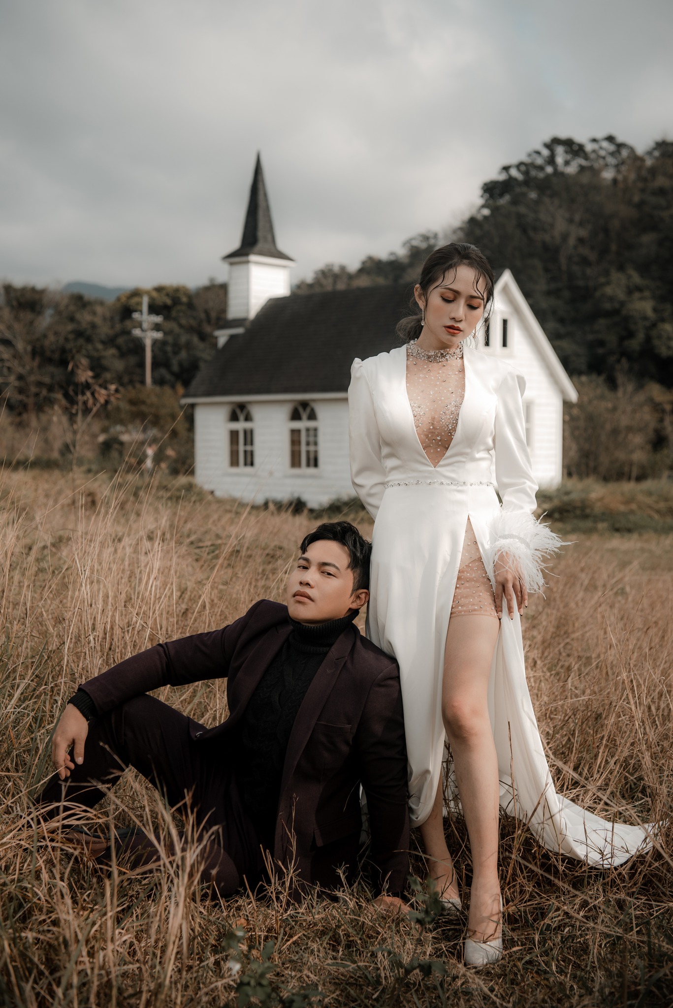 4.美式高衩深V禮服